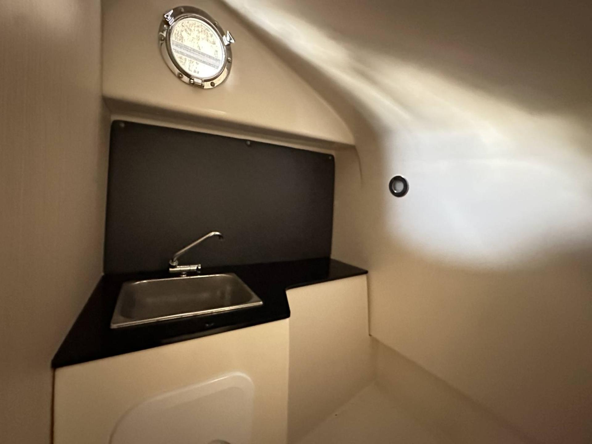Équipements à bord : bains de soleil avant et arrière, table de cockpit, bimini, cuisine extérieure avec évier, guindeau électrique, taud de cockpit, 1 cabine avec deux couchages, GPS traceur/sondeur Garmin pour naviguer en toute sécurité.