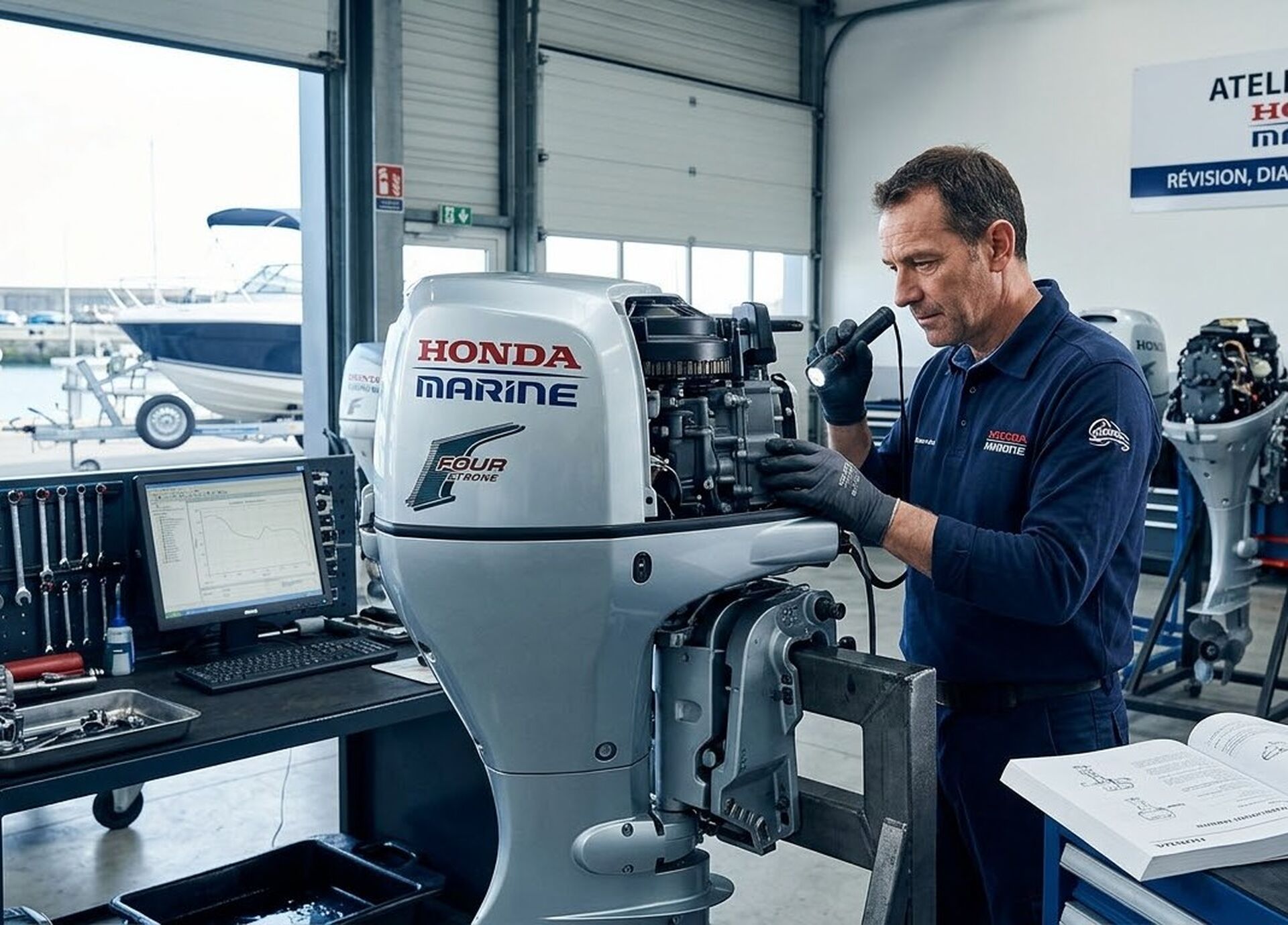 Sur votre page dédiée, vous expliquez que chaque moteur Honda Marine d’occasion est minutieusement contrôlé dans votre atelier agréé, avec révision complète, test de performance et conseils personnalisés à l’achat.